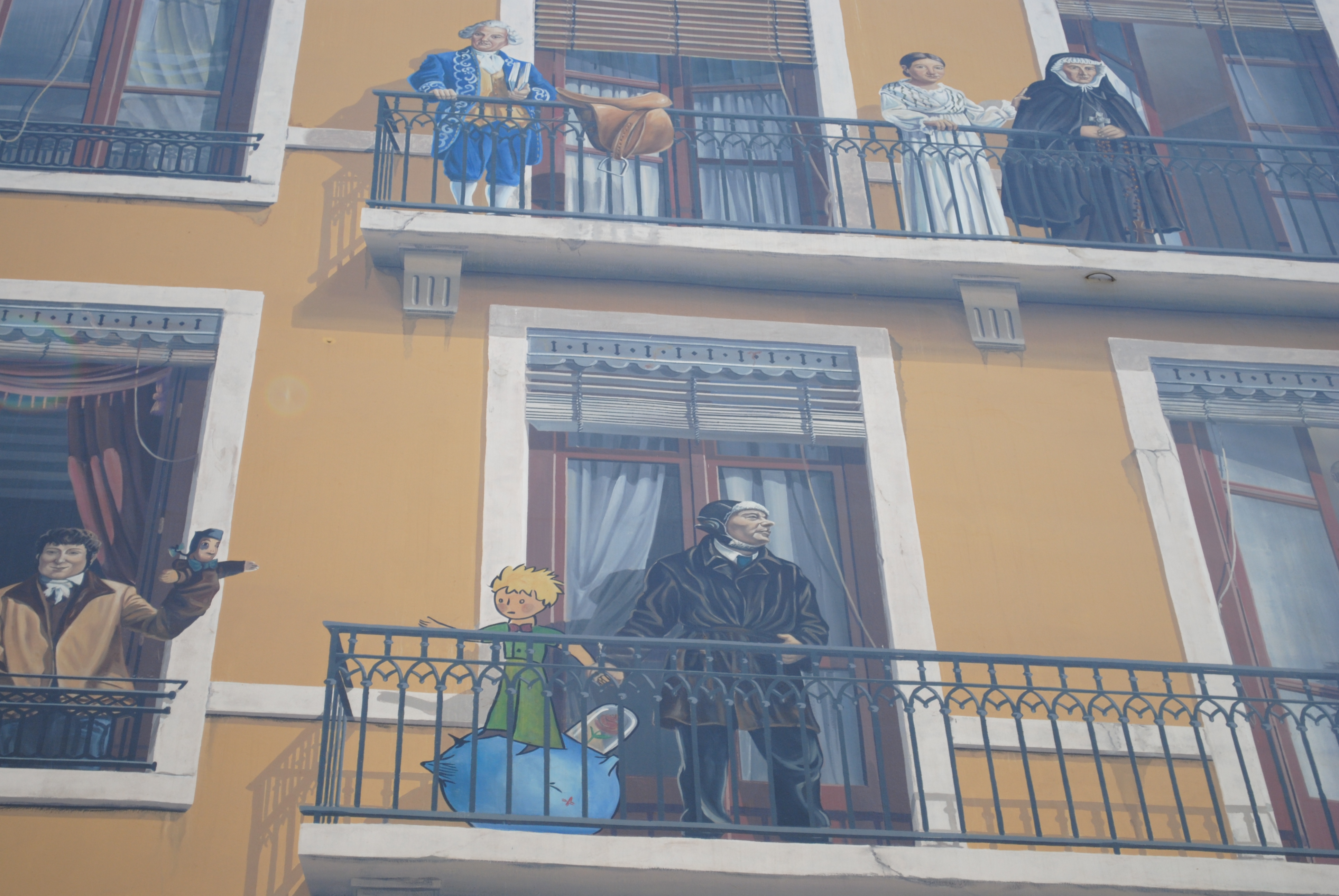 La Fresque des Lyonnais displays many famous people from Lyon, e.g., Antoine de Saint-Exupéry, Paul Bocuse and Laurent Mourguet).